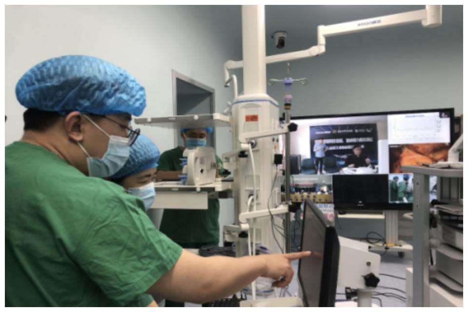 上午8时许,在征得患者和家属同意后,专家团队为来自荣成72岁的患者利用5G技术搭建的 “空中手术室”实施手术。手术期间,牛海涛教授在青岛大学附属医院作为主操作手,通过高品质5G网络远程控制位于威海市中心医院手术室里的“妙手”从操作手,通过3D术野视频全景画面展示,精准地为患者切除病灶。