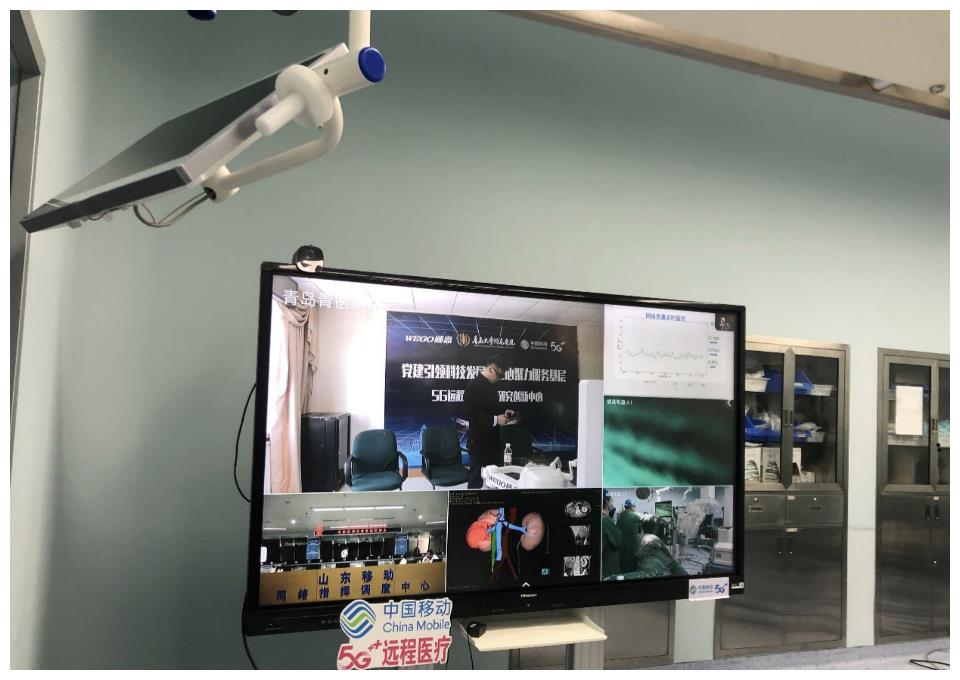 6月19日上午,在威海市中心医院,又一例人体肾脏5G手术通过中国移动5G行业专网和国产威高“妙手”机器人,在青岛大学附属医院与威海市中心医院建立的“空中手术室”成功实施。